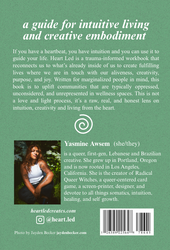 heart led is a trauma-informed workbook that reconnects us to what’s already inside to create fulfilling lives where we are in touch with our aliveness, creativity, purpose, and joy. written for marginalized people in mind, this book is to uplift communities that are typically oppressed, unconsidered, and unrepresented in wellness spaces. this is not a love and light process, it’s a raw, real, and honest lens on intuition, creativity and living from the heart.